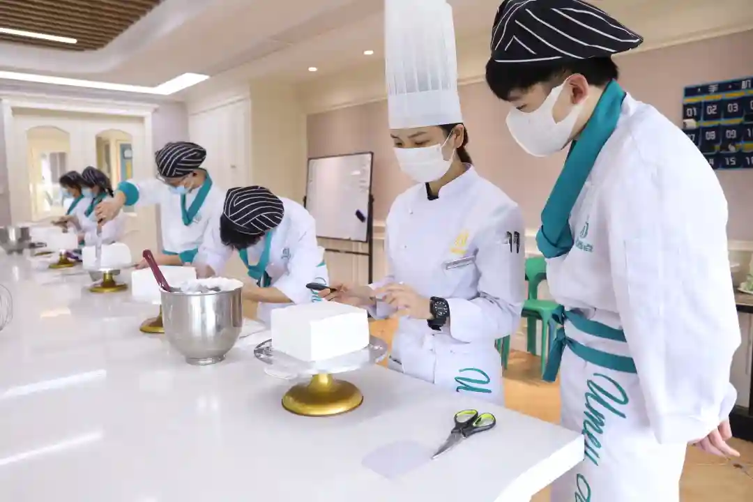 “之前对于西点,我一直只处于自己爱吃的阶段,但是来到了这里学习之后,感觉打开了新世界的大门。我从来没想过两周前还是个连抹刀都拿不好的我,竟然现在都能够成功进行抹面,就连基础裱花我也都可以操作。