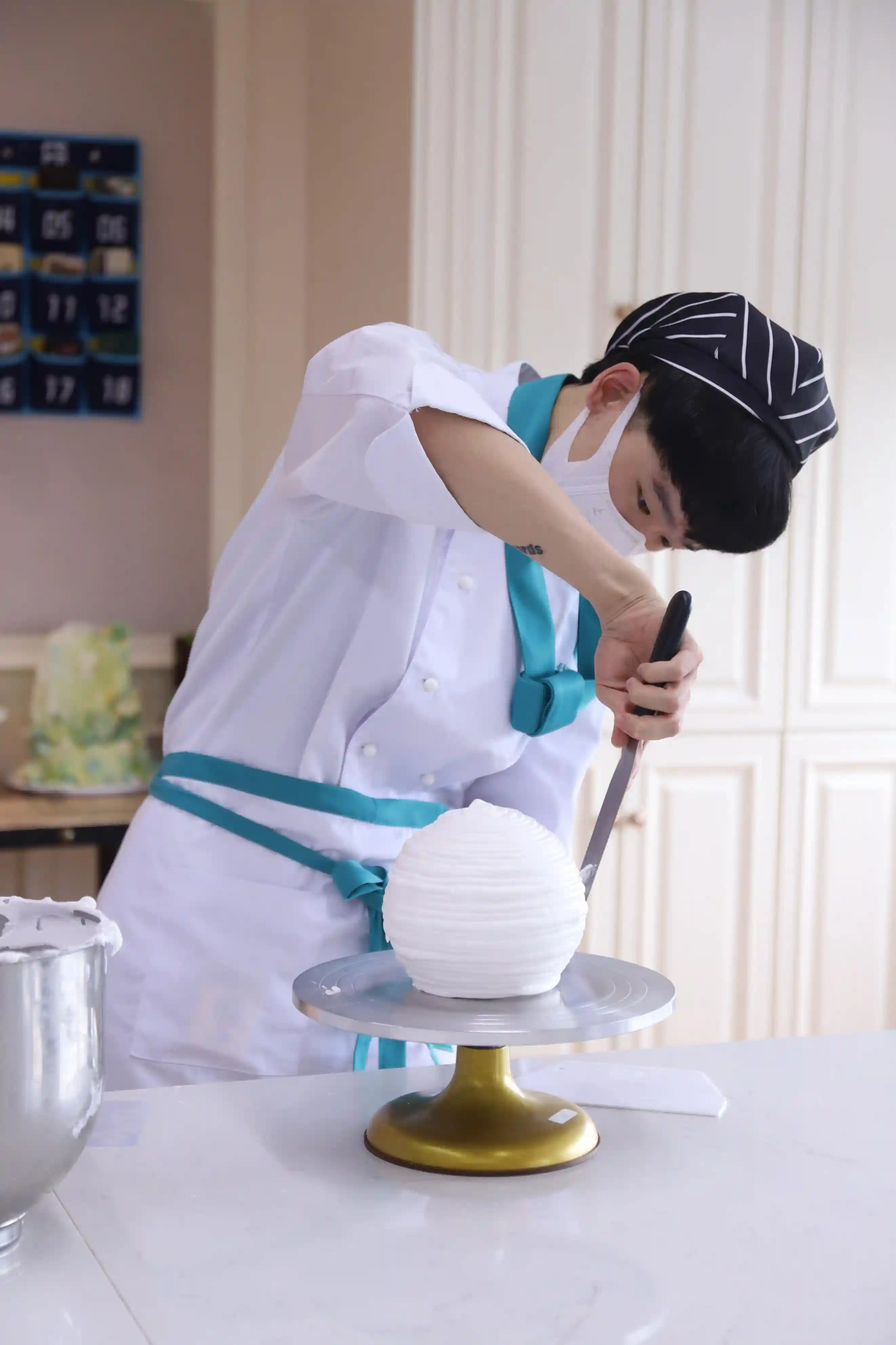 从零基础小白到现在可以独立进行蛋糕抹面,宇豪感觉十分自豪。