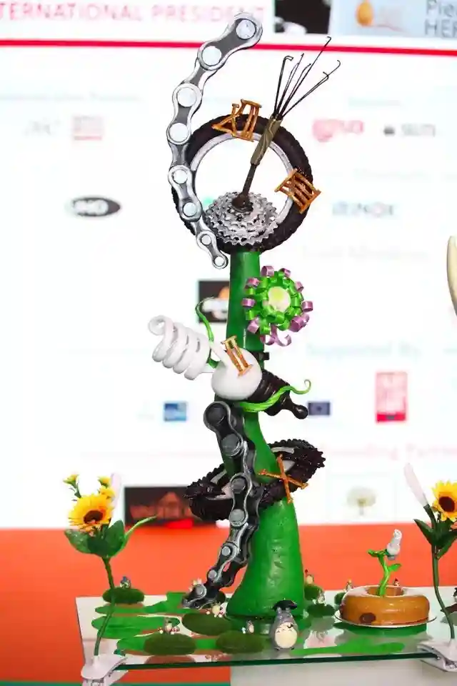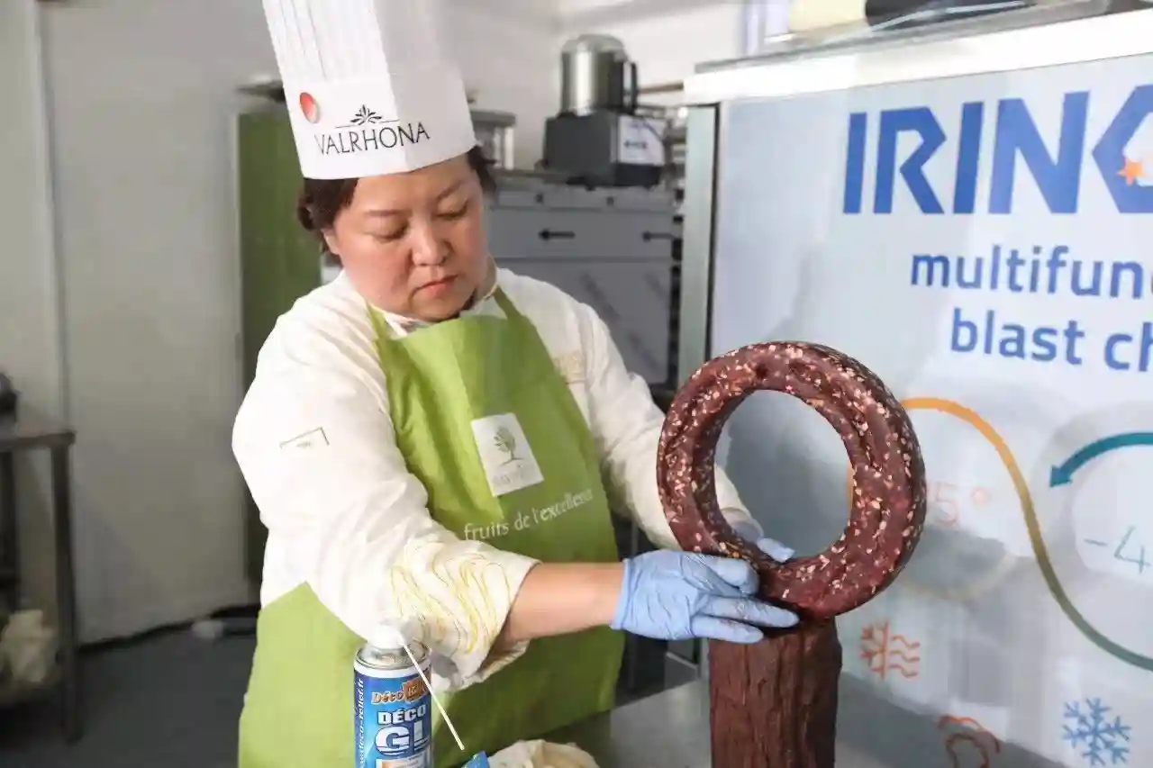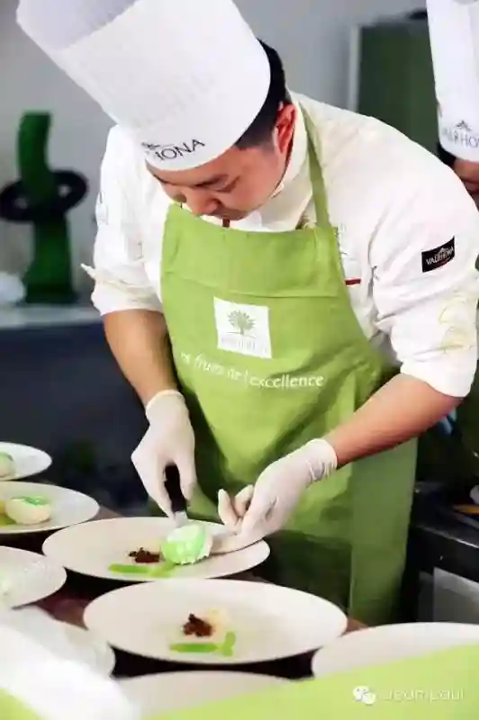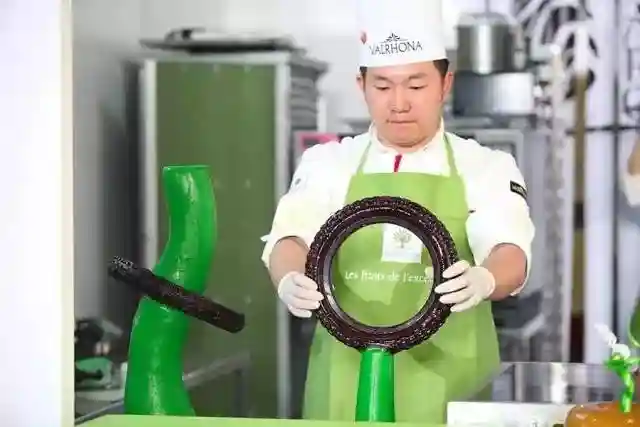 今年大赛的主题是环保,中国队在巧克力蛋糕环节,紧扣环保节能主题,在巧克力蛋糕中间用糖艺制作出绿植和节能灯泡,美观应景,里面用了一种相对小众的食材——沙棘,沙棘的口感很有个性,相对于其他口味来说较为见仁见智,食材具有非常大的挑战。
