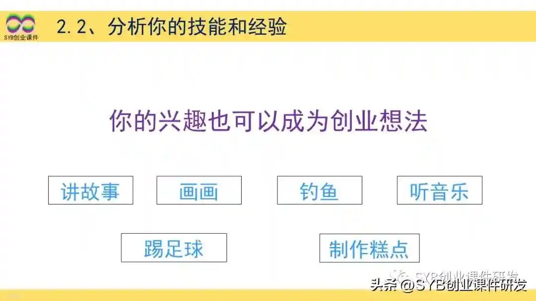 你的兴趣也可以成为创业想法,例如讲故事、画画、钓鱼、听音乐、踢足球、制作糕点等。