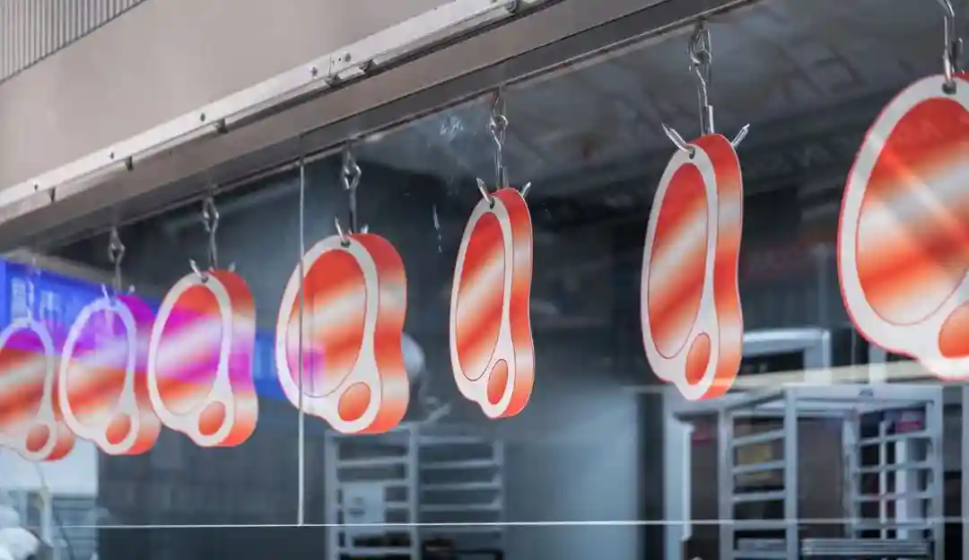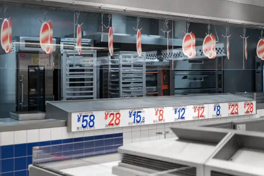 另一侧窗口模仿市场肉铺档口,挂了一排“肉”,提升了空间的趣味性,也带来更加沉浸式的场景体验。