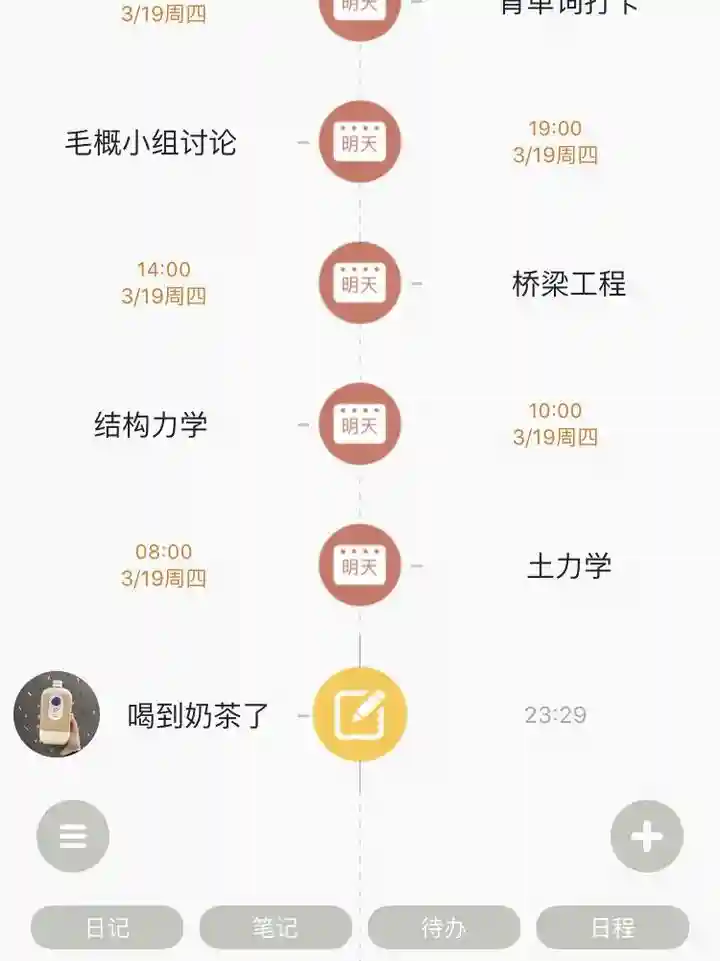 •时间轴排布,不仅能清晰地规划一天,还能随手记录生活中的小确幸。