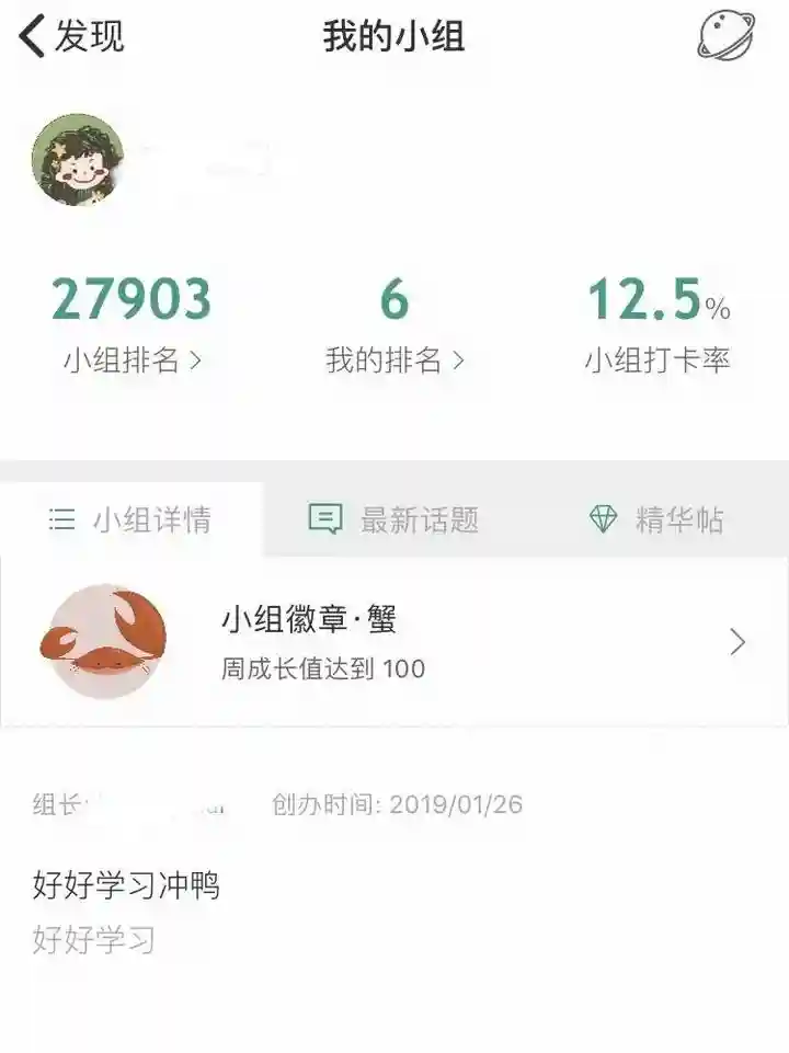 •可以自由建立/加入学习小组,和小伙伴一起背单词打卡。