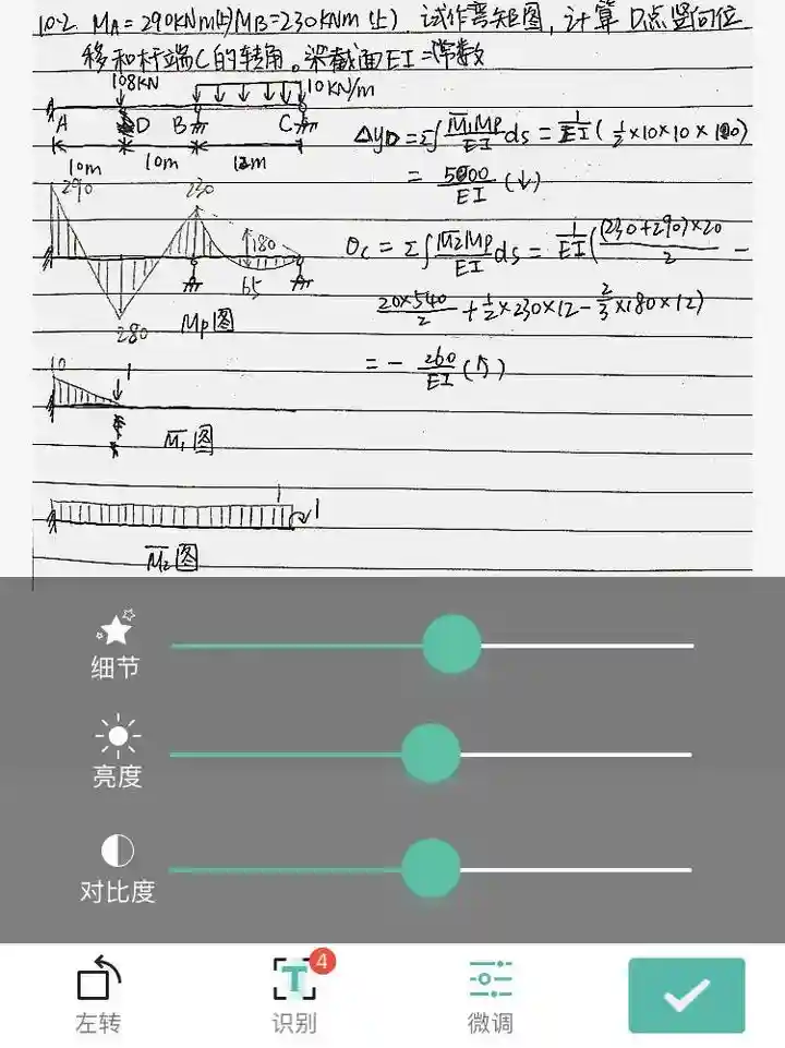 •扫描后自动识别图像,只需要稍微调整下边框。确定边框后还可以调整细节,使作业看起来更清爽整洁。
