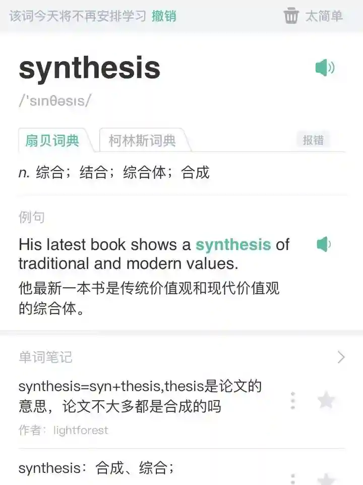 •每个单词不仅有释义,还有发音、例句和笔记,多维角度记单词。