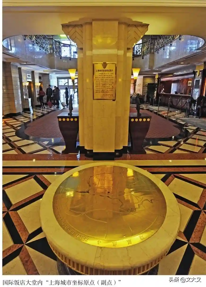 图五国际饭店大堂内的“上海城市坐标原点”标志