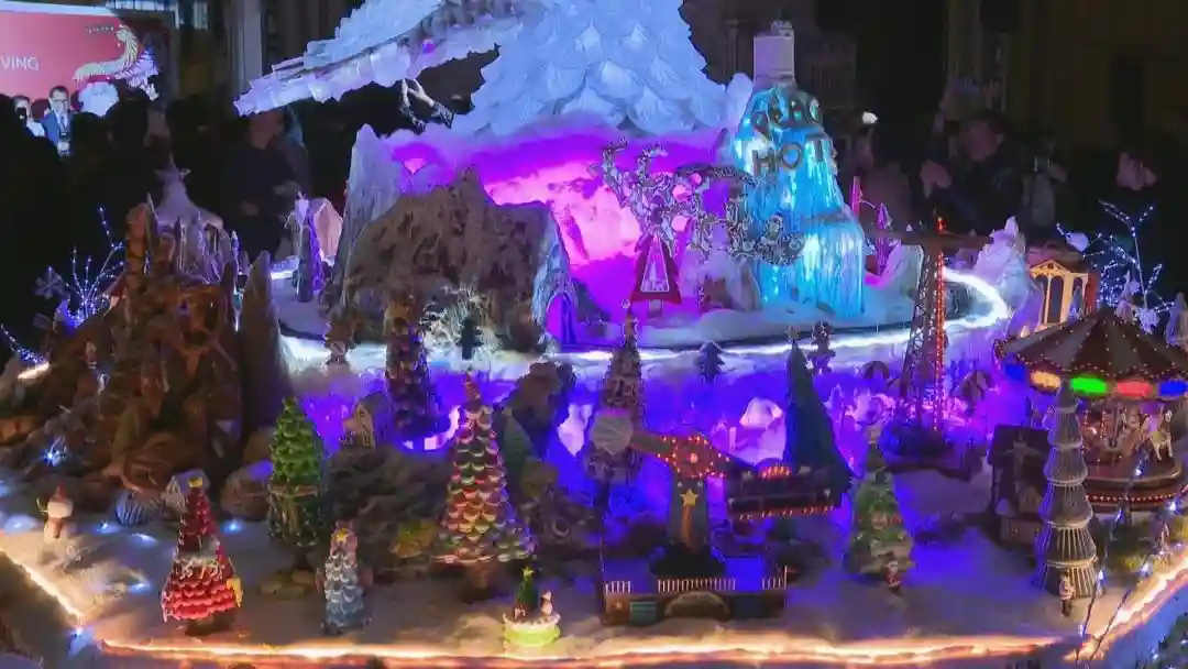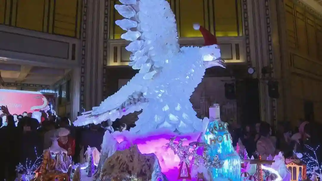 近日,上海和平饭店打造的“和平奇境”正式亮灯,让市民游客感受到了浓浓的迎新氛围,也让大家多了一个拍照打卡品美食的好去处。在酒店大堂,通体晶莹的琉璃艺术品和平鸽,衔着翠绿的橄榄枝落在正中央,围绕四周的是由国宴级厨师团队,尤其是国家级非遗传承人——面塑大师安斌精心策划设计、耗时数月打造的“和平奇境”。