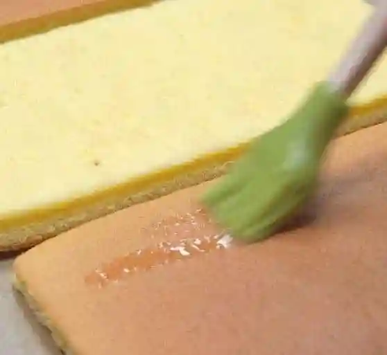 蛋糕胚切开之后,每层都刷一些酒糖水(酒、糖、水按照1:2:1调配),直到酒糖水渗透到蛋糕胚底部为止。不过要注意的是酒的挑选因人而异。
