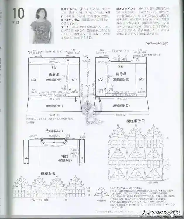 袖口:2.0mm钩针钩边缘花样B(见图解)13组