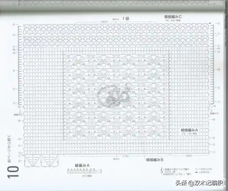 2、第4行开始中间按图解钩花样B(见图解),排花顺序:19网格+38格花样B+19网格