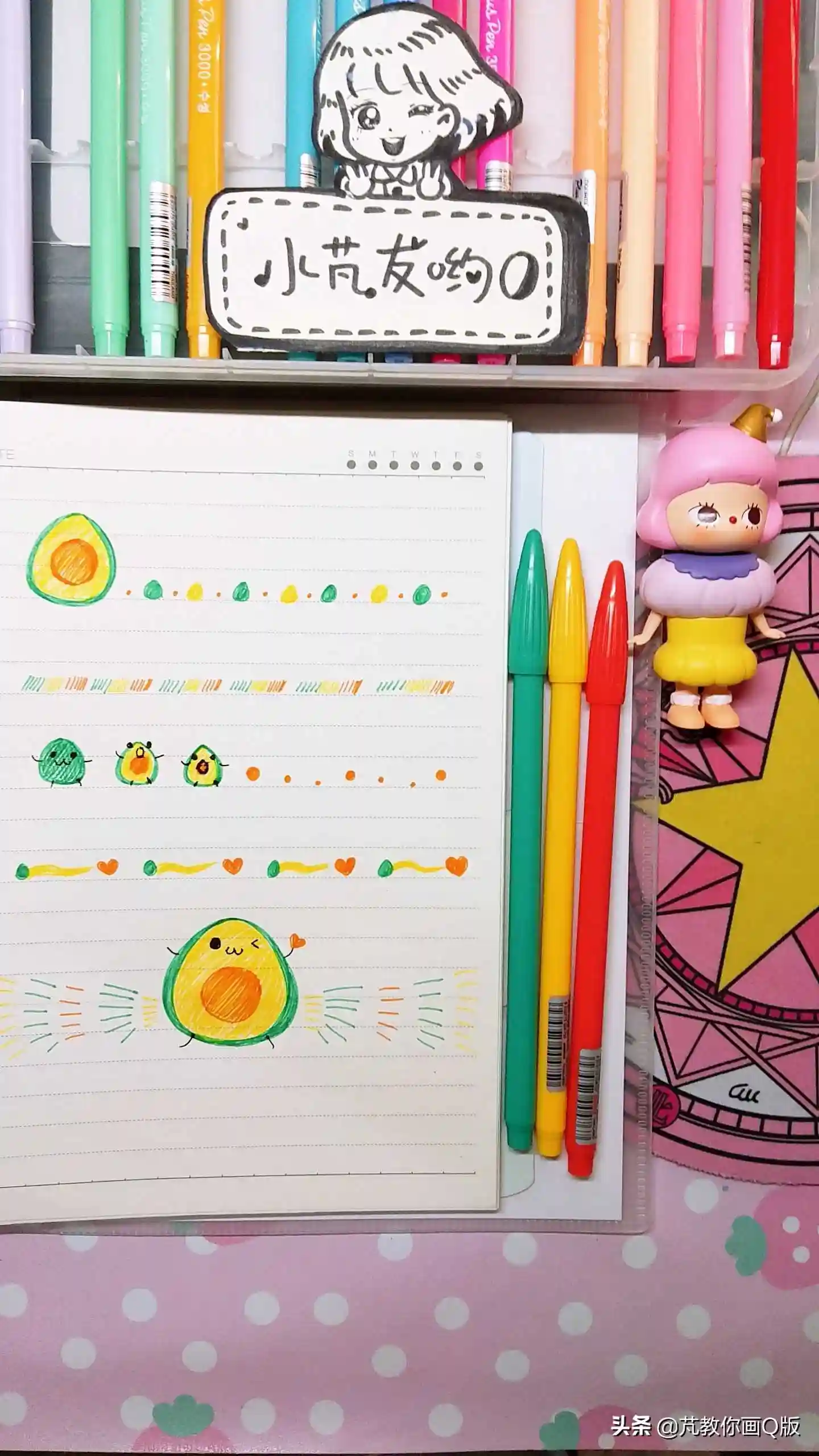 以这三种颜色为基础,以牛油果为基本图案,进行组合搭配,也可以画出很可爱的花边。
