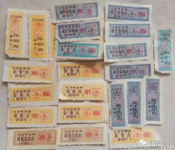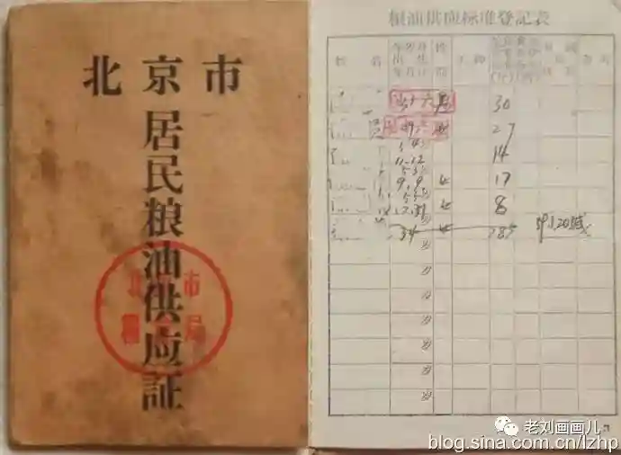 那时每家每户有一个粮本,实行“划片定点,验证凭票”的粮食供应办法,每人每月粮食有定量,分100多个等级,从事重体力的工人和大学教授能够得到照顾,一般成年人粮食定量为32斤,儿童减半,一些家庭粮食不够要算计着吃。