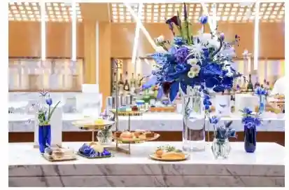 现场智慧细胞区域以弧形透明框架和玻璃容器的独特装置艺术,呈现冷色调高科技实验室质感,营造科技艺术美学。同时,也展现了专利科技“TFC8细胞触发因子”,持续为肌肤带来细胞级修护,促进自身的修护与愈生。此次联名下午茶将风靡全球的明星单品——AB面霜作为灵感,酒店的餐点团队采用品牌标志性蓝色为主色调,将其旗下产品中所使用的天然植萃成分作为食材,巧思制作成多款别致西点:柠檬酸奶慕斯塔配黄瓜鱼子酱、绿茶椰子豆腐芝士蛋糕、巴伐利亚橄榄油配糖渍红酒蓝莓等。色彩明艳的西点分布在错落层叠的金色下午茶架中,搭配特别调制的蓝色春季无酒精饮品“HealingStar疗愈之星”印花,在联名下午茶的同时,发现更多健康生活的灵感。(小雪)