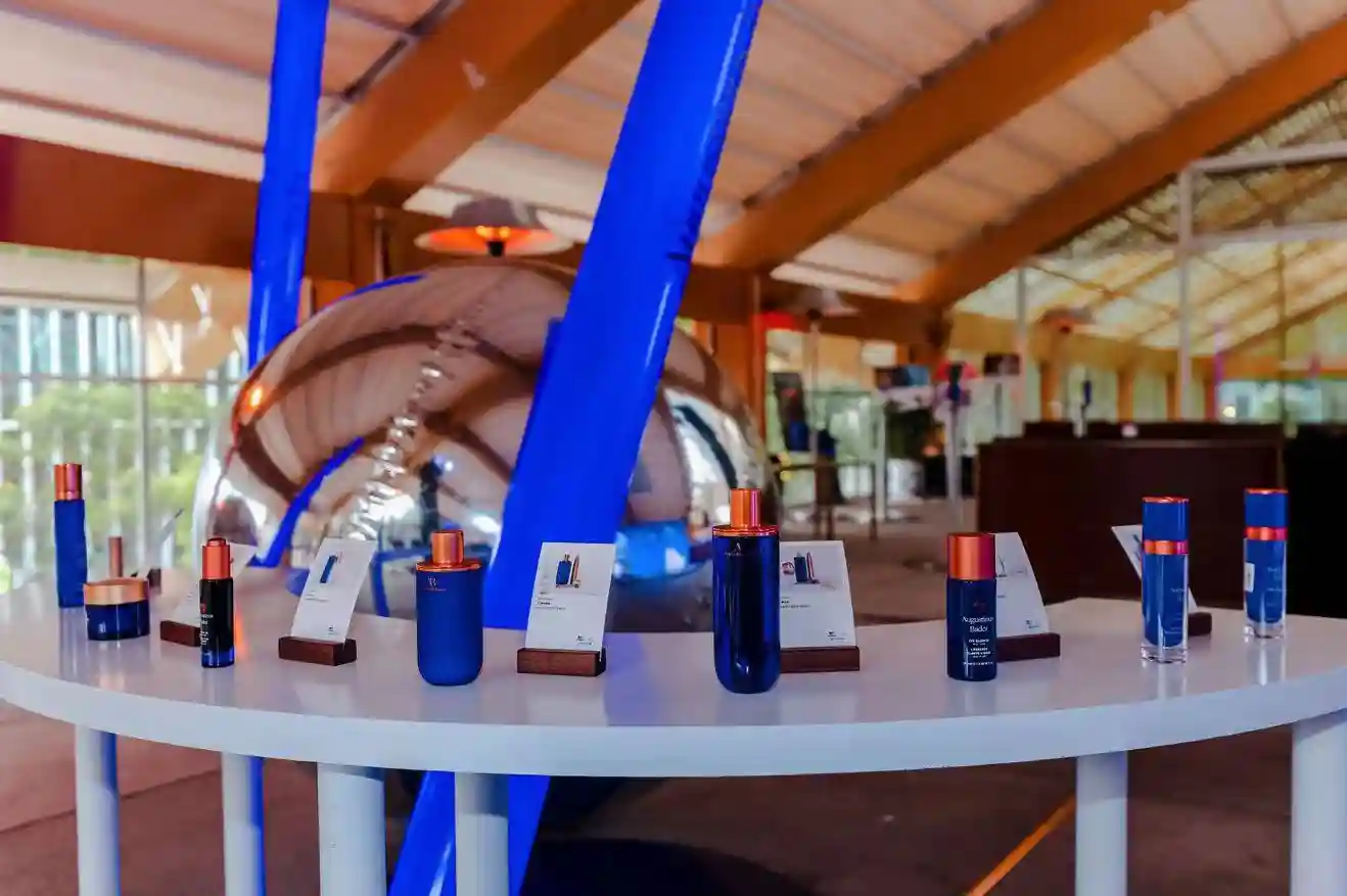 智慧细胞区域以弧形透明框架和玻璃容器的独特装置艺术,呈现冷色调高科技实验室质感,营造科技艺术美学。同时,也展现了品牌核心的智慧专利科技“TFC8细胞触发因子”,持续为肌肤带来细胞级修护,促进自身的修护与愈生。