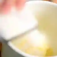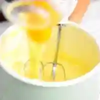 3.用搅拌器将黄油搅拌至发白此时,会呈现半凝固状态,说明搅拌均匀了