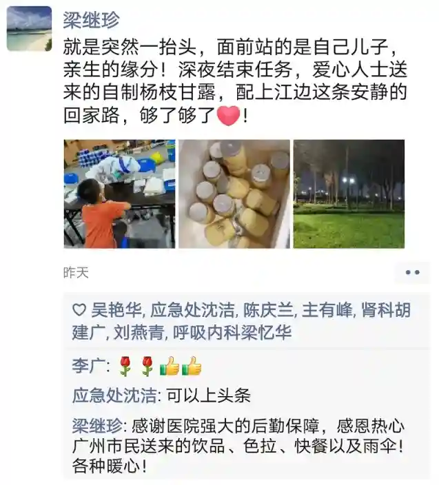 梁继珍家里有两个孩子,哥哥8岁,弟弟4岁,社区设置了三个临时采样点,碰巧丈夫带着哥哥来到了太古仓,丈夫一眼就认出了穿着防护服的她并告诉了儿子。