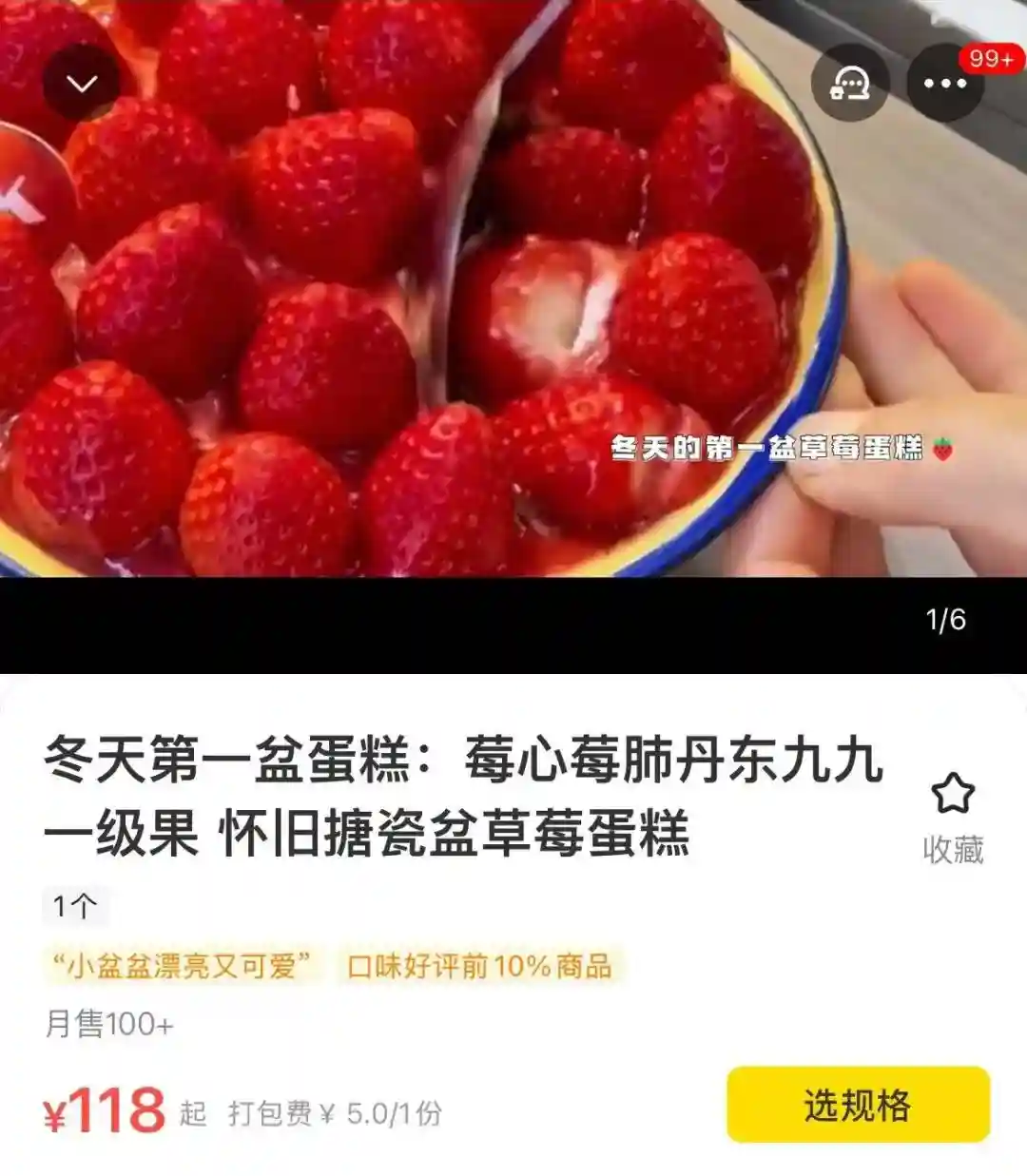 小编在该电商平台看到,沈阳售卖搪瓷盆草莓蛋糕的店家不少,有店家的购买页面显示,这一款售价为118元的草莓蛋糕,月售就有100+个。